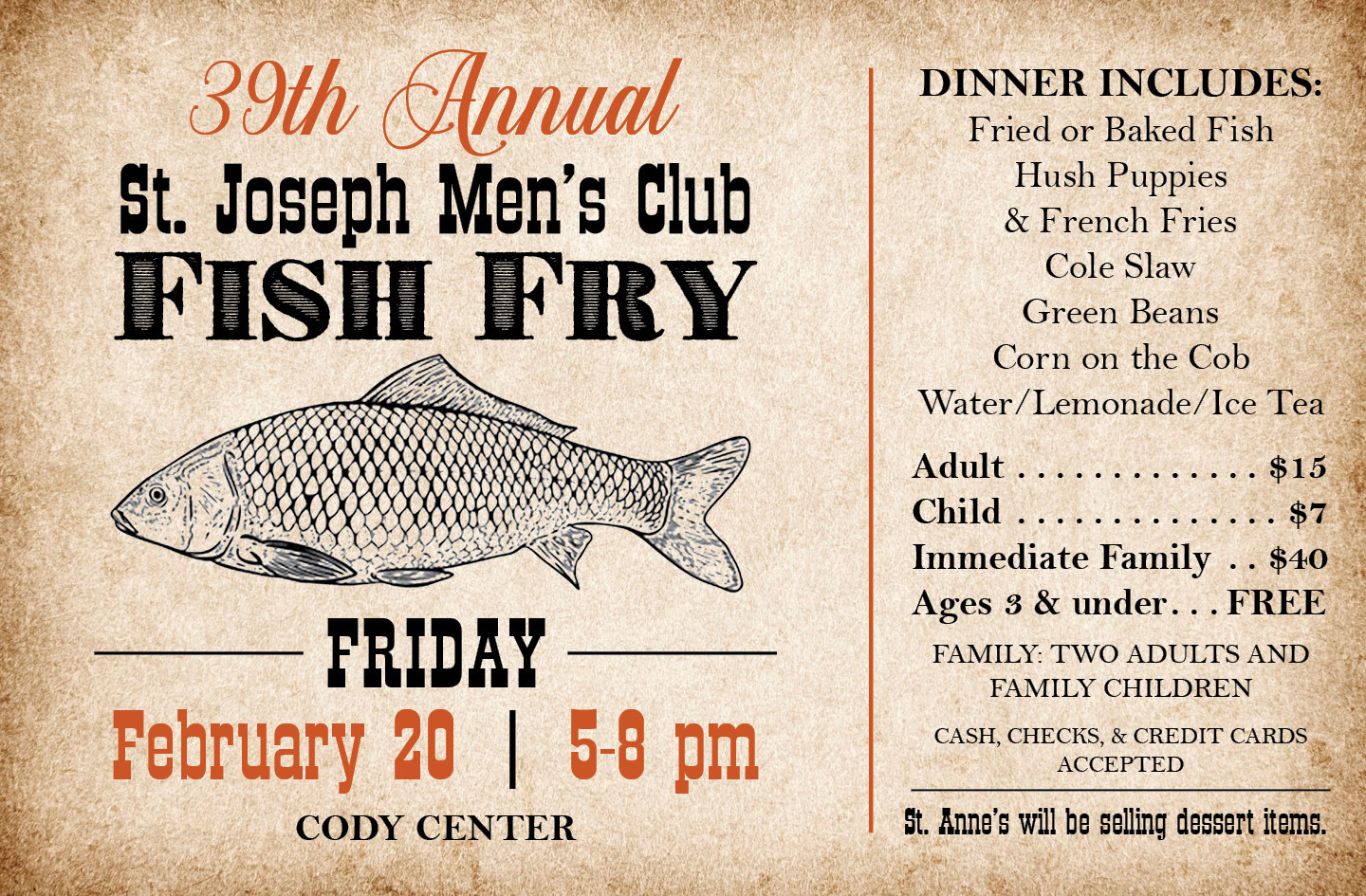 We also promote the life of the parish through our fundraising efforts and by hosting events for the parish, such as an annual Lenten fish fry, and a yearly golf tournament.